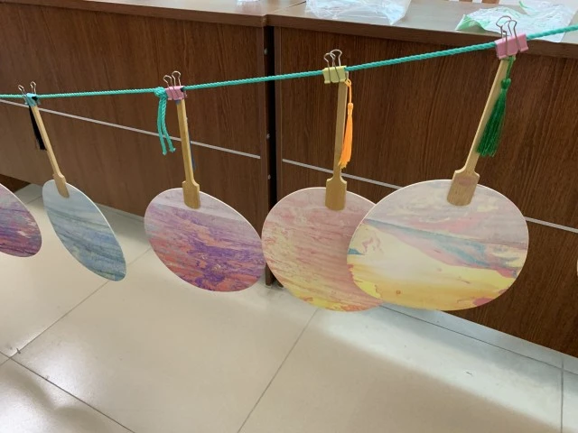 在漆扇制作过程中,孩子们发挥想象力,大胆尝试各种颜色搭配和图案设计。他们在扇面上绘制出了花鸟、山水、文字等丰富多彩的图案,每幅作品都充满了童真和创意。在队员们的耐心指导下,一把把色彩鲜明,充满个人特色的漆扇纷纷诞生于孩子们手中。