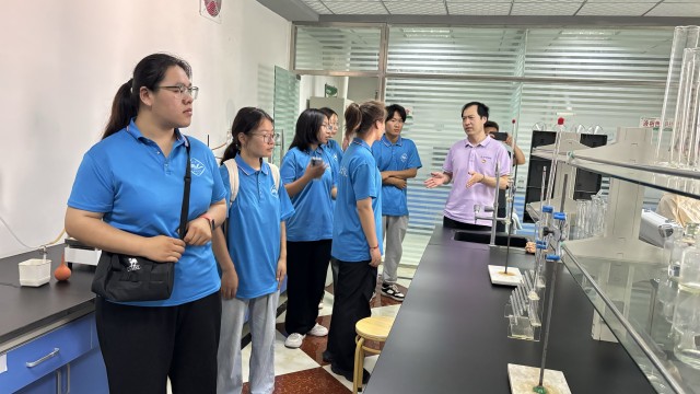 图为实践团成员参观学习振农饲料厂的实验室。大学生网报通讯员赵秋雨供图。