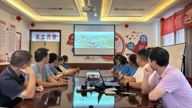图为实践团成员学习观看振农饲料厂企业宣传视频。大学生网报通讯员赵秋雨供图。