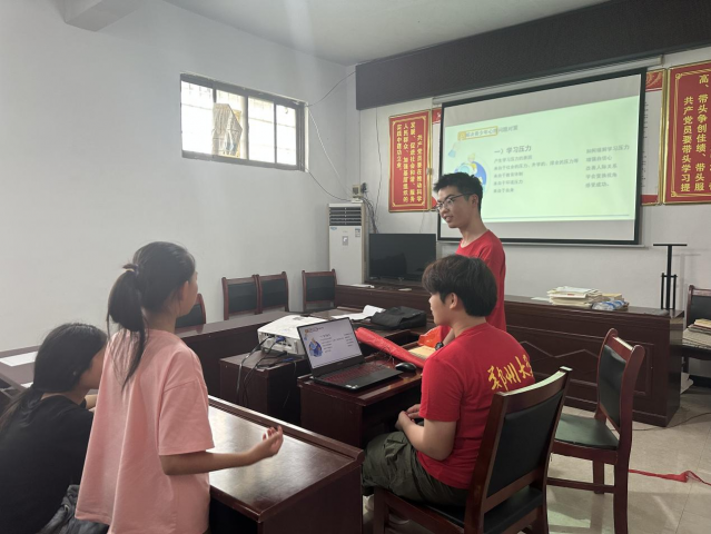 课程正式开始,讲解人通过一个关于青少年心理疾病的案例引出主题。然而,在讲解过程中,队员们发现孩子们仍然心存芥蒂,无法完全投入到课堂中。为了打破这种僵局,讲解人在介绍常见的心理疾病时,一面保持微笑,一面结合最贴近生活的例子,用通俗易懂的语言进行讲解。这一策略立竿见影,很快就有两个孩子分享了自己在生活中的切身体会,并因此获得了小零食的奖励。其他孩子在看到这两个最小的孩子自信地回答后,也逐渐放下了心中的羞涩,开始积极参与课堂互动。