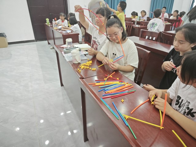 随后,志愿者们带领孩子们进入了创意吸管手工课程的世界。五彩斑斓的吸管在孩子们的手中仿佛被赋予了生命,他们充分发挥自己的想象力和创造力,将一根根普通的吸管变身为各式各样的手工作品。有的孩子制作了精美的吸管项链,有的则拼接成了有趣的动物造型,还有的用吸管搭建起了小巧玲珑的房屋模型。整个过程中,孩子们的脸上洋溢着快乐的笑容,他们不仅锻炼了手眼协调能力,还学会了团队合作与分享的乐趣。