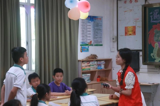 图为志愿者和小朋友的课堂互动 通讯员吴舒昕供图