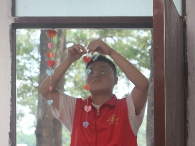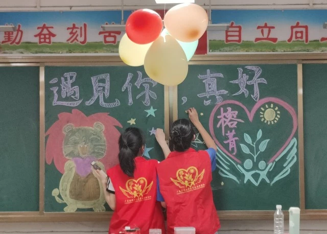 图为服务队志愿者在布置课室 通讯员蔡彦希供图
