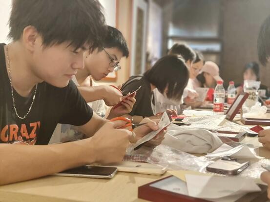 “纸上得来终觉浅,绝知此事要躬行。”为了更深入地了解剪纸艺术,实践队队员们亲自动手,体验了剪纸的制作过程。在传承人的悉心指导下,队员们逐渐掌握了剪纸的技巧,虽然作品略显稚嫩,但大家热情高涨,乐在其中。