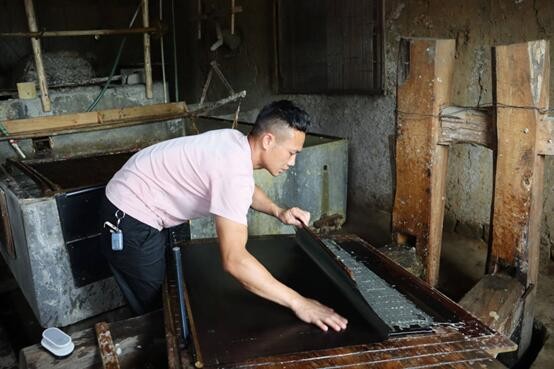 在生态村的核心区域,我们来到了一家传统的造纸工坊。工坊内,造纸师傅正忙碌地操作着,我们得以近距离观看造纸的全过程,还拍摄了不少照片视频,但看的时间长了,才发现这个步骤非常耗时,但造纸师傅却没有发出一声怨言,简直精神可贵!