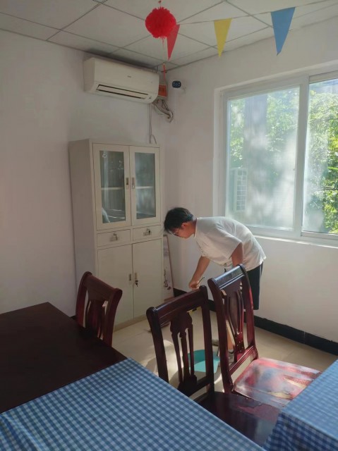 阳光明媚,志愿者团队带着满满的爱心与笑容,踏入了养老院的大门。在养老院负责人的带领下,志愿者们首先参观了老人们生活的环境和居住条件,随后介绍向他们了具体的志愿服务工作和事宜。手持扫帚、抹布、拖把等工具,迅速投入到紧张而有序的劳动中 。之后他们一行人立即进行了详细的分工。他们分工明确,有的负责清扫院落,有的负责擦拭门窗,还有的则细心地整理老人们的房间。一部分志愿者负责打扫公共区域,包括走廊、活动室和餐厅;另一部分则专注于老人的私人空间,如卧室和卫生间。他们特别注意到,老年人的居住环境需要保持清洁和安全,以防止跌倒和其他意外事故的发生。在清洁过程中,他们与老人们进行了广泛的交流,倾听老人的故事,分享生活的点滴。这种互动不仅增进了志愿者与老人之间的感情,也让我们更加了解老年人的生活状态和心理需求。他们不仅带来了爱心,更带来了无限的欢乐与温情。阳光透过树叶的缝隙,洒在养老院的院子里。志愿者团队带着清洁工具,满怀热情地开始了他们的工作。在劳动间隙,志愿者们还不忘与老人们亲切交谈,询问他们的身体状况和生活需求,用温暖的话语驱散老人心中的孤独与寂寞 。尽管工作繁重,但每个人的脸上都洋溢着满足和快乐的笑容。用实际行动诠释了“爱老、敬老”的真谛。他们亲自参与到打扫卫生的队伍中,不怕脏、不怕累,与志愿者们一起挥汗如雨,将养老院的每一个角落都打扫得焕然一新。