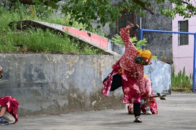 图为傩舞青年班在展示傩舞 中国青年王通讯员