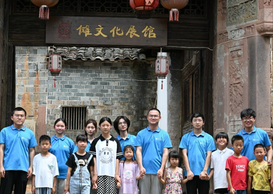 图为傩舞文化馆前与留守儿童的合照 大学生网报通讯员