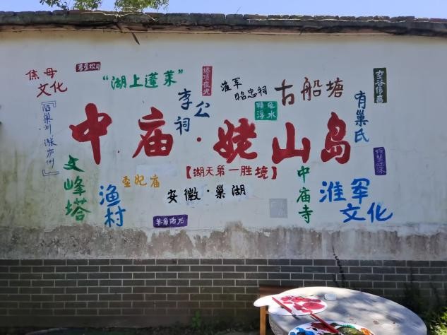 为了响应国家乡村振兴战略,助力乡村旅游发展。巢湖学院旅游管理学院赴中庙姥山岛“旅绘同行,志愿传情”乡村振兴实践团于2024年7月17日至7月23日前往巢湖中庙姥山岛掀起一场墙绘艺术浪潮。实践团队成员们以实际行动践行了服务社会的宗旨,展现了大学生的责任感和创造力。(通讯员 林薇)图为实践团提前对中庙姥山岛绘制地点进行全面细致的踩点考察。通讯员 武苗苗 供图