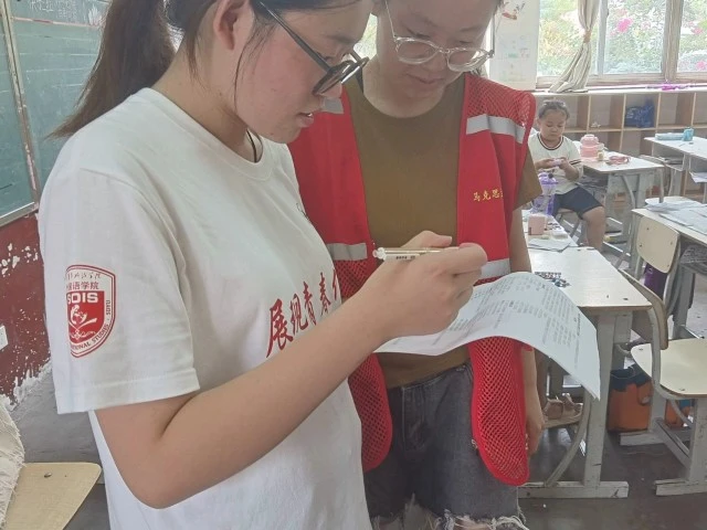 同时,实践队员参观了当地的红色展馆,深入了解了红色文化的历史脉络和精神内涵。在专业讲解员的引导下,队员们一行人穿梭于历史的长廊,目睹了先辈们留下的珍贵文物和文献资料。走进当地学校,队员们与师生们进行了深入的交流与互动。学生们展现出了对红色文化浓厚的兴趣和对历史的尊重,年纪尚小的学生能对相关知识对答如流,他们的积极参与和热情回应让队员们感受到了红色文化传承的活力和希望。