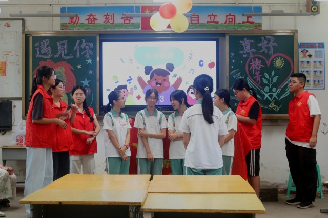 (通讯员 蔡彦希)为响应男女平等基本国策,广东医科大学榕菁志愿服务队前往广东省汕头市澄海区隆都镇章籍华侨学校开展义教活动。7月13日,服务队开启了首日的义教活动。在开营仪式上的自我介绍环节和游戏环节中,队员们与孩子们进行了初次交流,为接下来的互动奠定了良好的基础。教学活动也正式拉开帷幕,服务队准备了“我们都一样”与“生命教育”两节课程,旨在深刻传达性别平等的重要价值观,引导孩子们建立尊重与理解的社会观念。