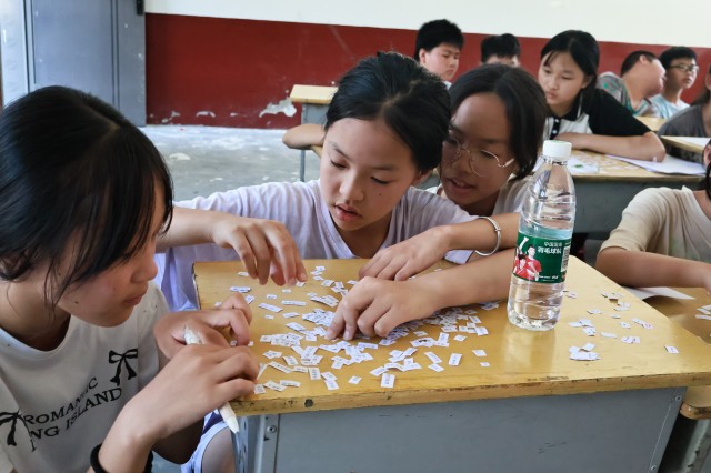 陈佳琪老师为初中生带来了一场别开生面的语文课---拼贴诗。同学们随着老师对拼贴诗的介绍逐渐雀跃起来,对作诗跃跃欲试。陈佳琪老师在黑板上展示了两篇典型的拼贴诗,带领学生们分析其中意象的特点,句子之间的承接连续性以及整篇拼贴诗的美感。接着,同学们在老师的带领下开展自己的拼贴诗创作,出现了以晨曦、月亮、影子等意象塑造的诗词与小故事。