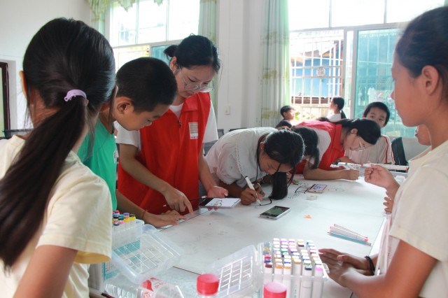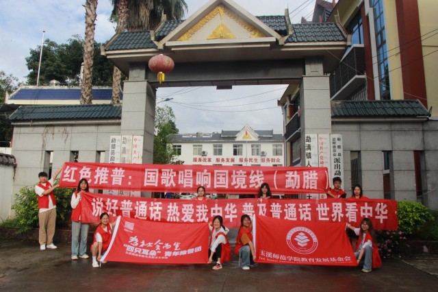 为了积极响应推广普通话号召,助力文化传承,玉溪师范学院马克思主义学院“四只耳朵”青年推普团于2024年7月19日在西双版纳傣族自治州勐腊县勐满镇开展了一场独特的推普活动——将普通话推广与绘画艺术巧妙融合,让甲骨文与现代汉语交相辉映,以四季更迭为线索,共绘一幅诗意盎然的长卷。