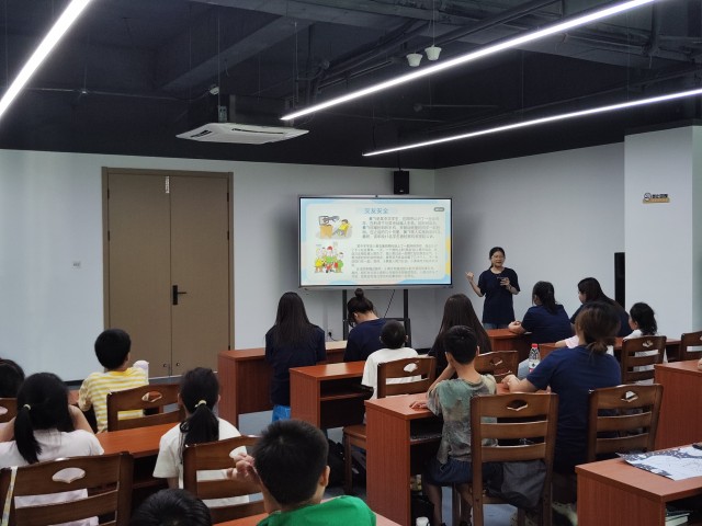 普法团成员向小朋友们讲解遇到校园霸凌、意外突发事件的处理方法