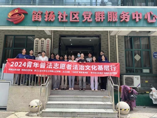为提升社区居民的法律意识和法治素养,7月15日至19日,浙江工业大学之江学院人文学院联合柯桥区政法委、柯桥区法学会等单位,组织该校法学专业在读学生10余人赴柯桥街道、华舍街道所下辖的笛扬社区、管墅社区、黄社溇社区、人利社区、华墟社区等五个社区开展“青年普法志愿者法治文化基层行”下乡普法活动。