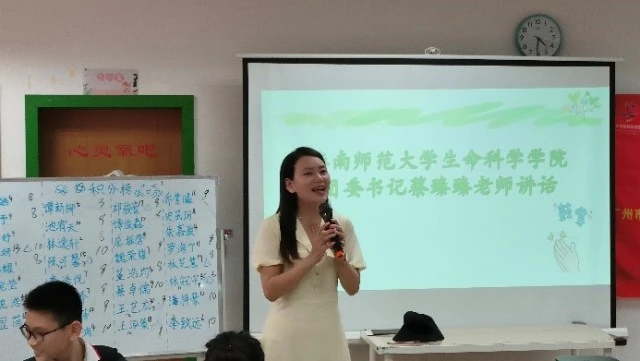 图2 蔡臻臻老师发言:老师在活动中发表讲话,鼓励学生们积极参与科学探索