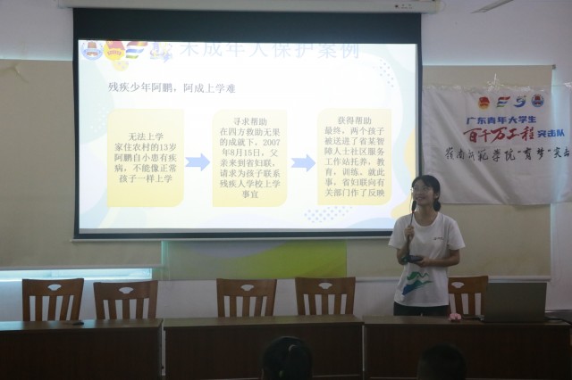 近日,为进一步加强未成年人的安全教育,提升未成年人的自我保护意识和能力,岭南师范学院“育梦”突击队在霞山区新兴街道后坡村村委会开展了一系列丰富多彩的未成年教育活动,取得了显著成效。