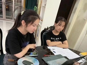 图为第7组支教团队组长制作PPT。袁艳 供图。