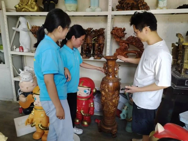 次日,实践团成员深入探访了嘉祥县的民风民俗,通过阅读相关历史资料和文件,了解了嘉祥县的文化背景。团员们还特别学习了红旗渠精神,并欣赏了嘉祥独特的石雕艺术。通过与当地人民的交流,实践团成员深刻感受到了他们在修建过程中付出的艰辛努力和展示出的精神风貌。隔天拜访了当地的手工艺人,仔细观察了他们制作作品的过程,包括使用的工具、材料、技巧和步骤。团员们针对自己感兴趣的环节或疑问,向手工艺人提问,并请教了他们的经验和技巧,收获颇丰。