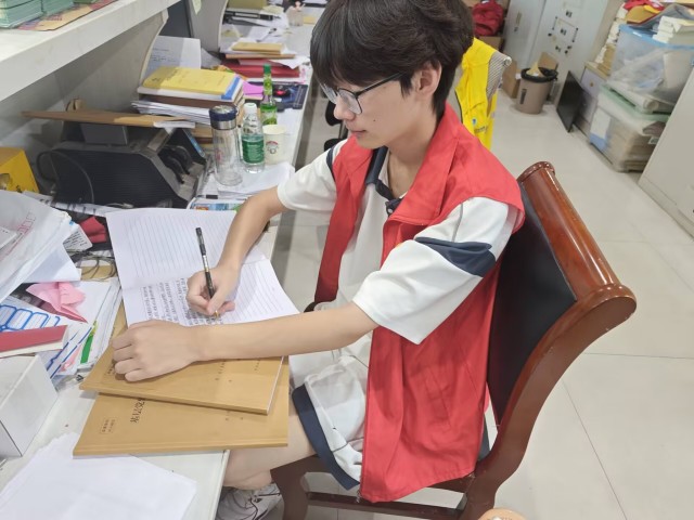 图为实践团成员郭函瑞在吴窑四房村帮助社区志愿服务社区工作人员处理日常工作,打扫社区卫生等志愿服务 。大学生网报通讯员 郭函瑞 供图