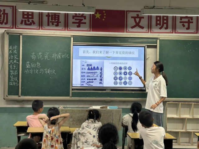 为进一步提高物质文化遗产保护意识,传承弘扬中华优秀传统文化,8月2日,湖北师范大学体育学院“青力”志愿服务队在浠水县第七实验小学方铺校区,开展了一堂以“青花瓷·非遗文化”为主题的体验课。