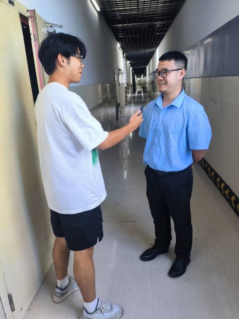 图为实践队员采访槐林镇高级中学老师。大学生网报通讯员 徐晓文 供图