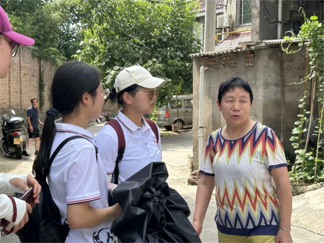 接下来调研队采访了村民,进一步了解了乡村科技特派员制度运行情况与实际效果。迎着炎炎烈日,调研队走在村里的小路上,试图寻找村民展开调查。正值午后,大多数村民都午休了,村里能看到的人并不多。调研队员两两一组,分头行动,总算是找到了一些村民,成功展开了访问。调研队了解到,这里主要种小麦、玉米,主要的产业就是石榴。“我们这里家家户户都种有石榴,不过有的多有的少,村里到处都是石榴树,那边还有大片的石榴田呢!”一位大妈说道。同时,问到的村民大都表示接受过乡村科技特派员的指导,对科技特派员的专业能力和负责程度都表示满意。一位村民也提到“我以前参加过几次技术培训,现在也用上新技术了,石榴的产量确实提高了不少。”
