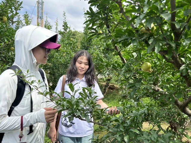 调研团队来到胡王村,首先前往村委会对工作人员进行了访谈。胡王村位于陕西省西安市临潼区骊山街道,是该街道下辖的一个行政村。据工作人员介绍,胡王村因一棵拥有2300年树龄的国槐——胡王汉槐而闻名,目前这里的主要产业是石榴。胡王村的石榴种植面积广泛,其中不乏百岁树龄的老石榴树。这些老树虽然传统,但通过现代农业技术的运用,如拉枝扦插、老树芽变等育种扩繁方法,以及作物套种等管理模式,使得石榴的产量和品质都得到了显著提升。同时,当地还积极引进、培育石榴新品种,加大科技、环保要素的投入,推动了石榴产业的可持续发展。调研队随后也实地参观了石榴种植地,深入了解了石榴的种植以及生长情况。在科技力量与科技特派员的助推下,石榴产业焕发新生,蓬勃发展。