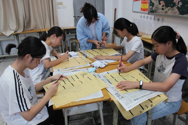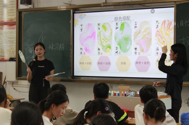 为积极响应全面实施学校美育浸润行动的号召,落实广东技术师范大学与石坝中学“手拉手”帮扶机制,探索高校与乡村学校双向交流,加强乡村美育工作,营造校园美育文化,提高学生美育意识和素养。“舞跃狮腾”百千万工程突击队携手石坝中学,举办了独具一格的美工课堂体验活动,将书法、脸谱、漆扇等传统艺术元素融入课堂,为学生们开启了一场穿越时空的美育体验之旅。