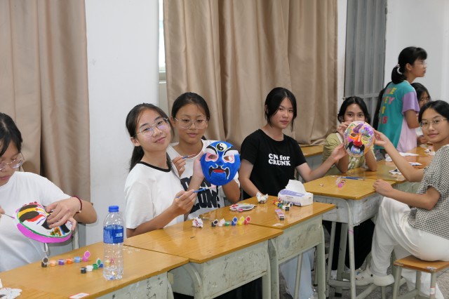 陈秋谷老师为学生们讲述英歌舞脸谱的发展历史与文化内涵。在小组合作中,学生们充分发挥创意,将所学知识与个人想象相结合,绘制出一个个生动鲜活的脸谱作品。这一过程不仅锻炼了学生的团队协作能力,更激发了他们对传统戏剧艺术的浓厚兴趣。