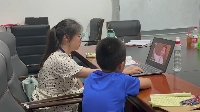 图为志愿者为小朋友们讲解课件。 通讯员 刘玳宁 供图