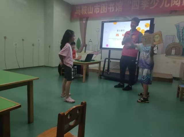 图为小朋友在你划我猜小游戏互动中 大学生网报通讯员 许旺超 摄