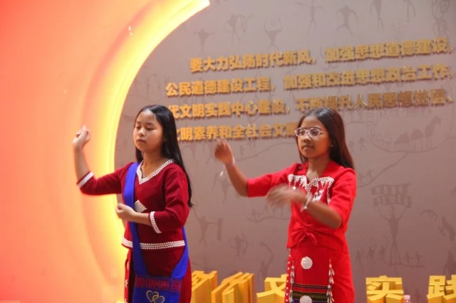 随后,一曲富有浓郁民族特色的舞蹈《耿马的佤》将观众带入了云南耿马那片神秘而美丽的土地。我们的舞蹈小精灵杨媛源和鲍丽春身着绚丽的佤族服饰,以轻盈的步伐和生动的表情,展现了佤族人民热情奔放、勤劳勇敢的精神风貌。他们的舞姿如同山间清泉,清澈而灵动,让人仿佛置身于那片遥远而又亲切的土地上。