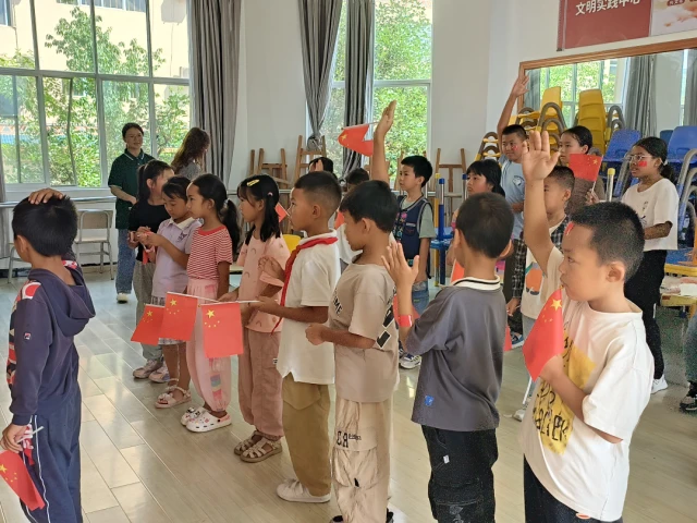 (图为实践团队和同学们一起制作国旗。付艳萍 供图)