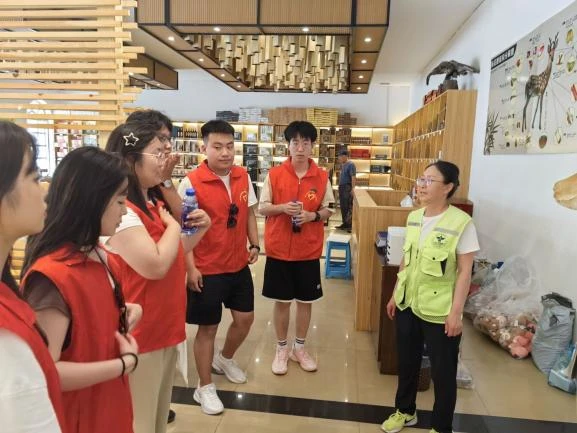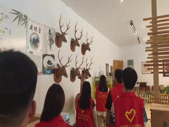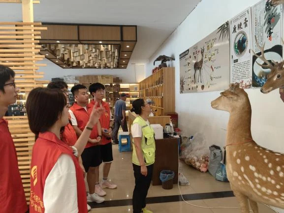 7月8日,团队成员们前往金山鹿苑,这里是鹿茸的产地,也是了解中药材鹿茸生长过程和药用价值的绝佳地点。抵达金山鹿苑后,团队成员们首先近距离观察鹿群的生活习性和记录鹿茸的生长状况。随后,团队成员向当地的工作人员学习鹿茸相关知识。工作人员从鹿茸的药用价值、生长周期、采集加工等方面进行了详细讲解。这一过程不仅丰富了团队成员的专业知识,更在文化传承的维度上,展现了中草药文化在现代社会中的活力与价值,激励着年轻一代继续探索、学习并传承这一宝贵的文化遗产。