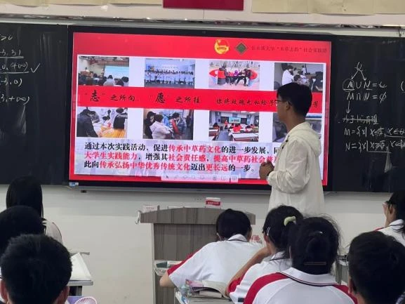 7月24日,实践团队成员与五常市雅臣中学共同举办中草药知识科普活动,依托专业所长,踏入校园,走进课堂,聚焦“龙九味”——黑龙江省九种特色药材,为师生献上一场知识的盛宴。团队成员通过PPT宣讲的形式,深入浅出地介绍了刺五加、五味子等药材的悠久历史与药用价值,同时结合宣传册分发,让师生直观了解中草药的魅力。互动环节中,团队成员与师生深入交流,积极解答师生们的疑惑,激发了大家对中草药文化的浓厚兴趣与传承意识。此次活动不仅传播了中草药知识,更在师生心中播下了热爱中华优秀传统文化的种子,为中华文化的繁荣添砖加瓦。