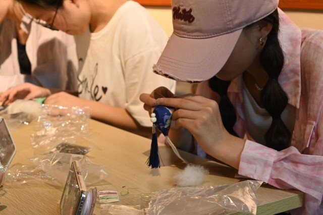 融匠美术馆,一个汇聚了众多传统手工艺精髓的地方,成为了实践队此行的第一站。一踏入美术馆,一股浓厚的文化气息便扑面而来,各式各样的非遗工艺品琳琅满目,让人目不暇接。在这里,实践队的学子们有幸亲手体验了香囊的制作过程,深刻感受到了匠人精神的传承与坚守。