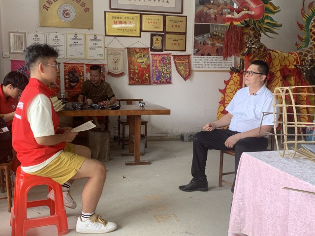 弘扬优秀传统文化,传承中华民族精神。7 月 13 日,桂林理工大学地球科学学院“晴”彩石榴籽实践团前往南宁市宾阳县。聚焦“民族团结”主题,将宾阳炮龙节为起点,以民族团结为最终目标。为了探索宾阳民族文化的丰富内涵,实践团来到了宾阳县龙狮协会即国家级非遗传承人甘师傅的工作室。为探究疫情后宾阳当地炮龙非遗文化出圈的原因,开启了一节学习炮龙制作与舞龙行进的文化交流实践课,体会宾阳当地的非物质文化遗产,以实践助推民族文化发展。