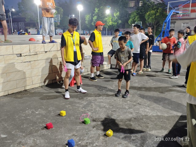 义心志愿服务队精心策划并组织了一系列丰富多彩的儿童趣味活动,包括套圈、夹玻璃珠、丢沙包等。在套圈场地中,孩子们的目光专注而炽热,他们紧紧握着手中的圈,轻轻抛出,眼神中带着满满的期待。每当有圈成功套中目标,现场都会引发一阵热烈的欢呼,那喜悦的声音响彻云霄。