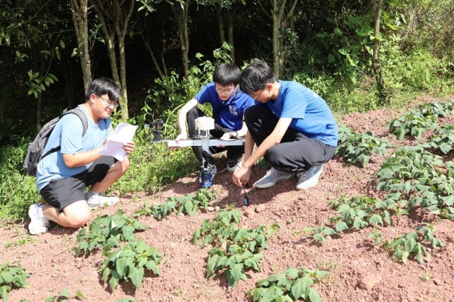 行走在乡野小道上,抬头看着清澈蔚蓝的天空和阔如海、色如雪、柔如水的云雾,弯腰抓一把独特的红土壤,在一路观察走访之下,我了解了许多独特的乡土文化,我也认识了不同的农作物,并且我们还是用团队携带的七合一气象站测量土壤数据,为村民提供更加科学的种植依据。乡村振兴之路上必然沟壑万千,但只要我们信念坚定,落实基层为农民提供智慧和科技,将所学知识真正应用到生产实践上必然可以踏平坎坷。