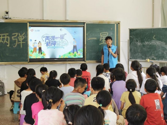 为了弘扬科学家精神,实践团还专门开设了“两弹一星”主题宣讲活动。志愿者们生动地向孩子们介绍了科研人员在极端环境下克服重重困难,最终成功研制出核武器和人造卫星的光辉历程。通过讲述这些英雄的故事,让学生们深刻体会到“两弹一星”科研事业的重大意义及其背后所蕴含的不屈不挠的精神。学生们表现出极高的兴趣和好奇心,积极提问并与志愿者互动,展现出了对未来科学探索的热情。