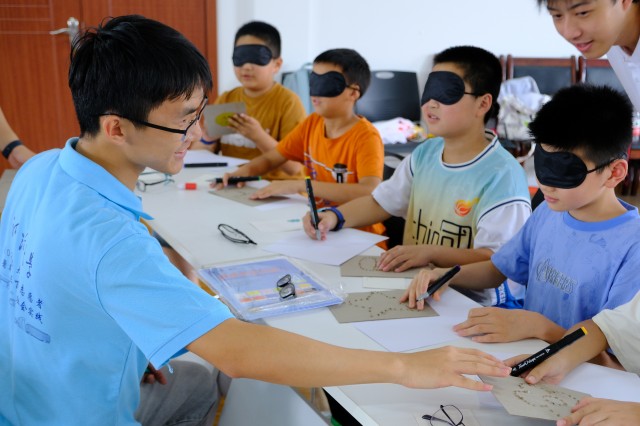 随后的换位心挑战环节更是让我印象深刻。我们戴上了眼罩,在志愿者的引导下完成了一系列的任务。在这个过程中,我仿佛走进了盲人的世界,感受到他们依靠听觉、触觉和记忆来感知周围环境的艰辛。尤其是在进行盲人购物任务时,我尝试在无法看到物品的情况下,仅凭触摸去辨别各种蔬菜水果,这对我来说是一项巨大的挑战。通过这个体验,我更加理解了视力障碍人士在日常生活中的困难和无奈。