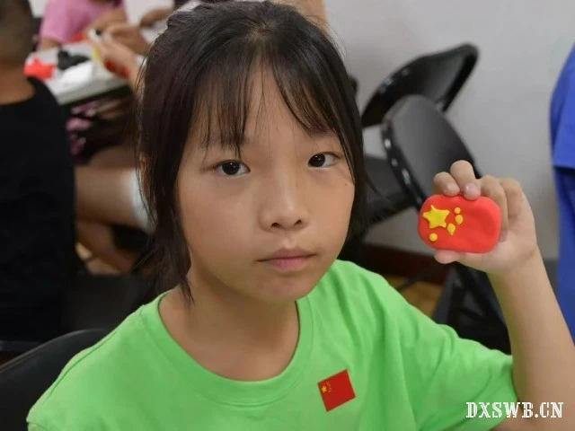 图为小朋友与粘土五星红旗的合影。大学生网报通讯员谢安琪 摄