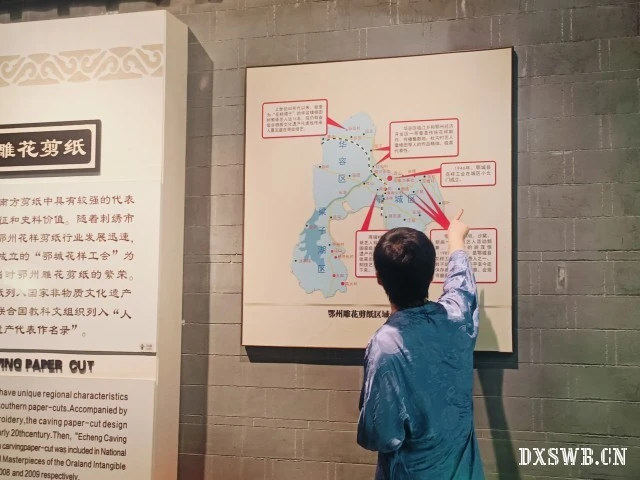 图为曹小琴老师向团队成员介绍鄂州雕花剪纸的分布区域。 朱嘉佳 摄