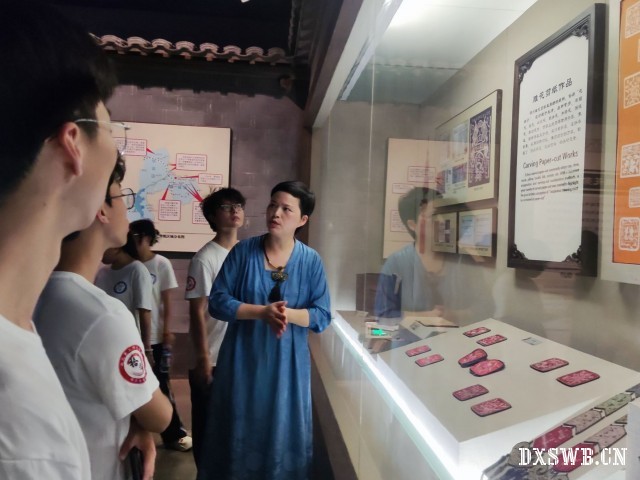图为曹小琴老师绘声绘色地向团队成员介绍鄂州雕花剪纸作品的巧妙运用,大家全神贯注,生怕错过任何细节。 黄朝凯 摄