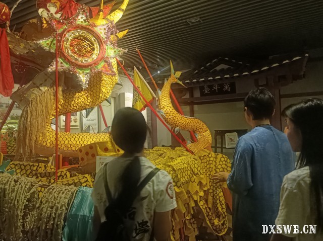 图为团队成员与曹小琴老师一同观察民俗馆里的嵩山百节龙复刻品。 朱嘉佳 摄