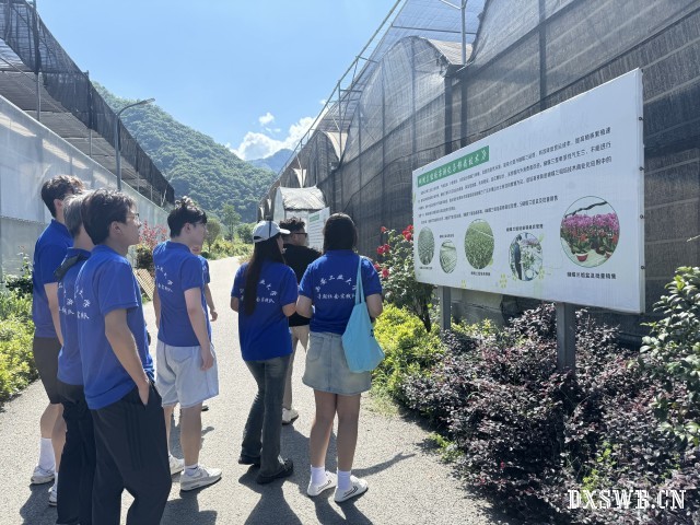 随后,实践队来到了马道镇沙坝村的高山花卉基地。这个基地是集培育、种植、包装、销售于一体的花卉生产销售示范园区,近年来通过“公司+合作社+农户”的模式,大力发展花卉种植,带动了当地农民增收致富。该基地掌握前端科技培育技术,通过无性繁殖花卉花种进行大棚养殖,大批量生产花卉销往全国各地,例如广州,成都、西安等地。实践队员们在大棚内看到了北美冬青、蝴蝶兰、长寿花、常青藤等多种名贵花卉,这些花卉不仅供不应求,而且年出货量达40多万盆,该产业为马道镇数以百计的农户解救了就业问题,足不出户便能获得收益,成功让大家走上致富之路,大大推进了当地乡村振兴发展。