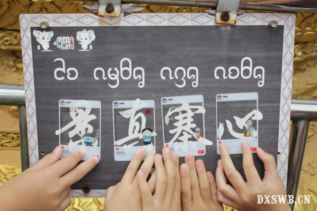 “汉语傣语,双语同心”。中华民族的情怀是相通的,推普团通过汉傣双语祝福语来表达中华民族共同且美好的祝愿。“出入平安”、“身体健康”、“生意兴隆”和“安居乐业”,是景真村里最常见的四句祝福语,这也是与傣族人民的生活息息相关的,这不仅是全民一条心的体现,更是新时代中华民族团结奋斗实现伟大复兴中国梦的美好追求。