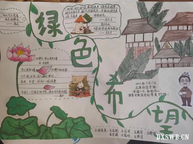 图为实践团成员和孩子们制作“美丽乡村”主题的“景真时报”,供图张蓉