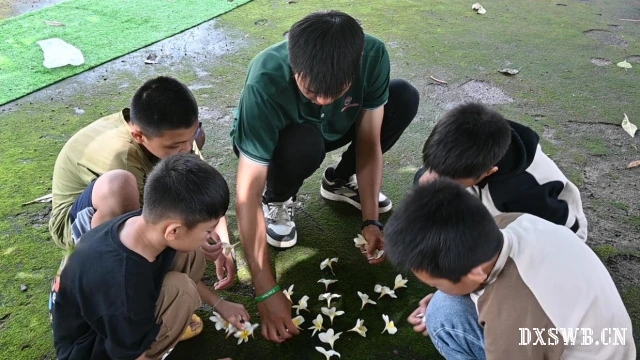 推普团带领孩子们不仅于大青树前诵读讲解《论语》,带领孩子们感悟孔子及其弟子们的智慧,还在缅栀子的芬芳中与自然互动,用落花拼出“和”与“合”的文字。这既是对自然和谐之美的赞美,也是对乡村新生活理念的诠释。在共同的参与和创作中,孩子们体验着和睦共处的喜悦,感受着合作共创的力量。在大青树下聆听《论语》,在缅栀子花下感受“和”“合”的韵味,共同感受传统文化的魅力,共同播撒乡村文化振兴的种子,让智慧与美德在这片土地上生根发芽,开花结果。